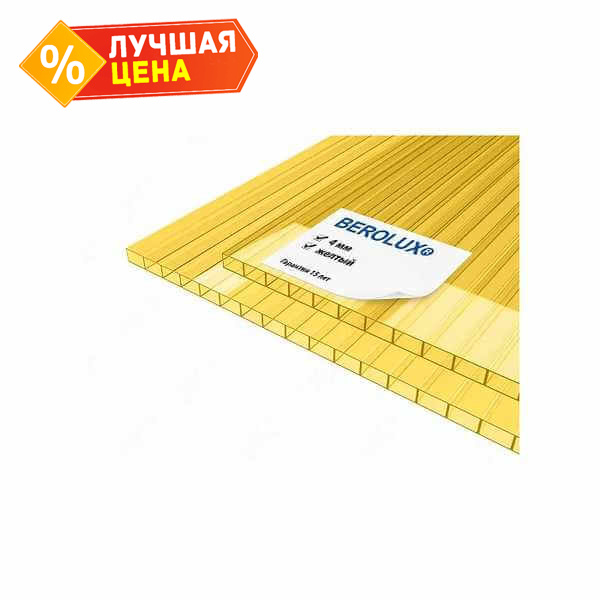Сотовый поликарбонат 4 мм BEROLUX желтый 2100х6000 мм