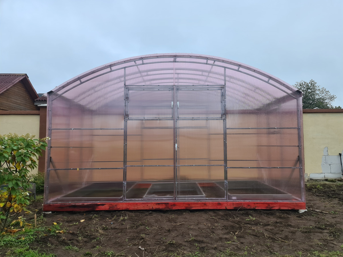 • широкая 4 м, ширина теплицы позволяет организовать 3 широкие полноценные грядки с комфортными проходами между ними;