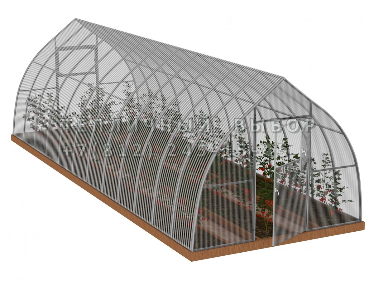 Теплица из поликарбоната Усиленная Капелька 3х12 h=2.3 м профиль 25х25 мм