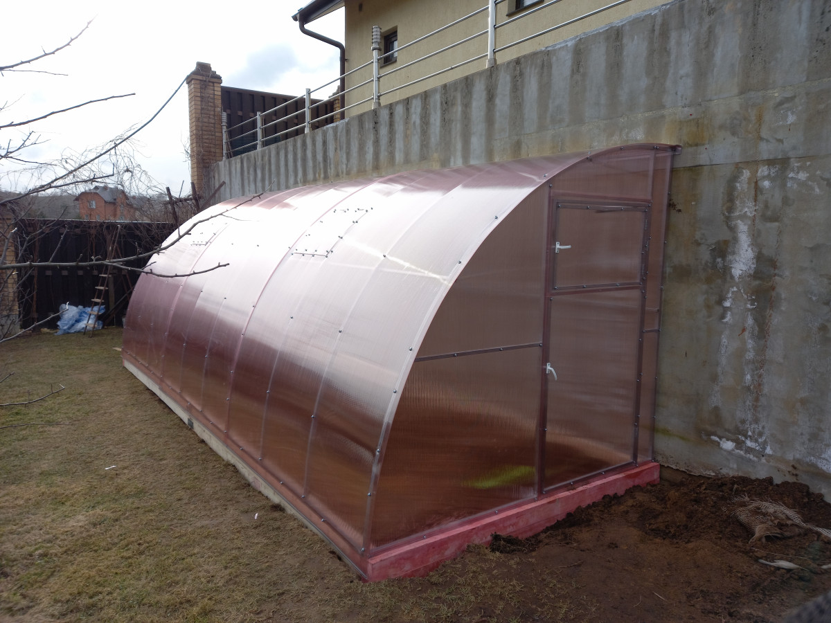 Теплица из поликарбоната Усиленная Пристенная 2,3х10 h=2.1 м профиль 25х25 мм