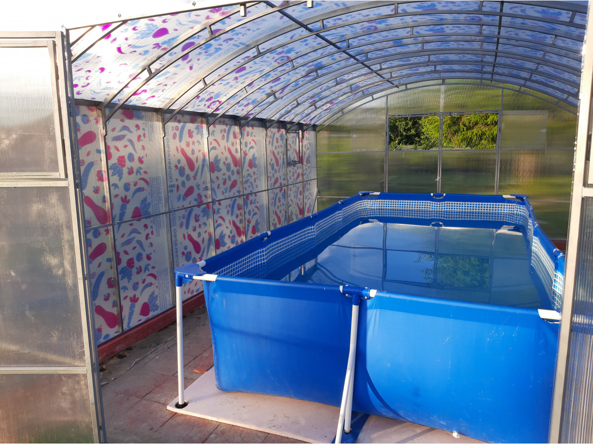 • широкая 4 м, ширина теплицы позволяет организовать 3 широкие полноценные грядки с комфортными проходами между ними;