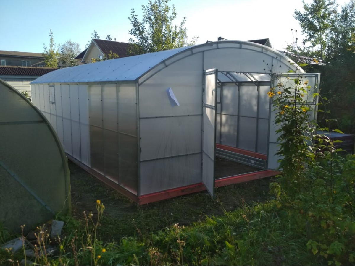 Возможна самостоятельная сборка по подробной инструкции. Сборка теплицы монтажниками-профессионалами компании занимает порядка 5 часов. В качестве основания рекомендуется использовать бетонный, либо деревянный фундамент из бруса. Предварительно брус необходимо обработать антисептиком. Полный комплект состоит из: